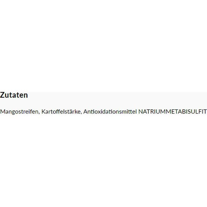 Zutaten: Mangostreifen, Kartoffelstärke, Antioxidationsmittel NATRIUMMETABISULFIT