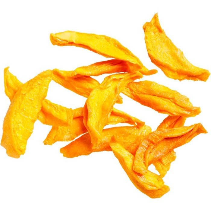 • Orange leuchtende, getrocknete Mangostreifen